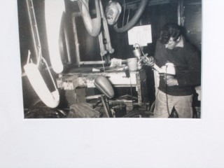 Jan nog in zijn goede doen in, 1956,als leerling spuiter bezig met een voor toen moderne lakspuit, hierna één op perslucht,PFFF het kon niet op! hij heeft nu wat meer, + de aplicatie en de technische mogelijkheden zijn aanzienlijk verbeterd.