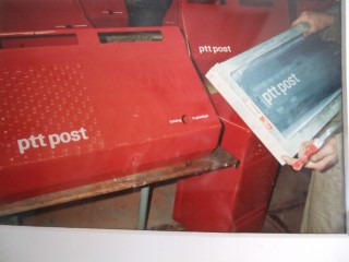 Brieven bussen, geheel gerenoveerd, stralen en rood coaten en het aanbrengen van de PTT POST tekst door zeefdruk toepassing bij ons,