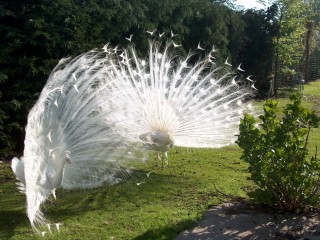 in jan zijn domijn, de witte pauwen laten zich van hun mooiste kant zien.