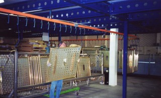 Panelen ophangen aan de lopende band.